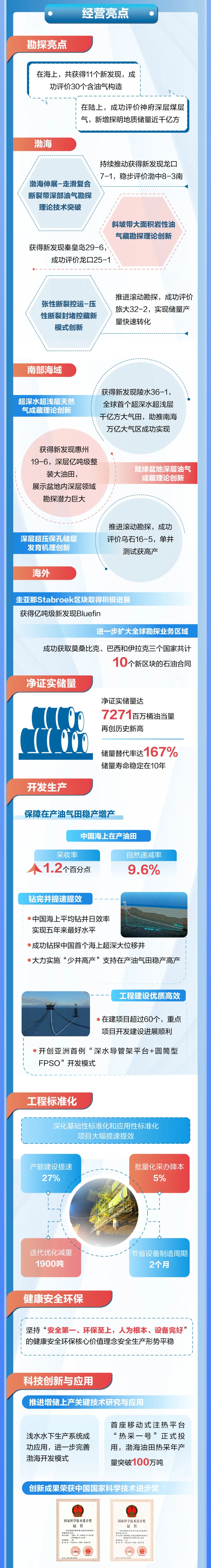 堅持可持續(xù)發(fā)展理念,注重生產(chǎn)安全,積極探索綠色轉(zhuǎn)型路徑。公司有效應(yīng)對超強臺風(fēng)“摩羯”等挑戰(zhàn),確保海上油氣田生產(chǎn)穩(wěn)步運行。油氣資源綠色低碳生產(chǎn)取得實效,中國海上首個全方位綠色設(shè)計的烏石23-5油田群建成投產(chǎn),渤海岸電工程三期項目全面投用,全年通過岸電工程等共實現(xiàn)綠電替代7.6億千瓦時。年內(nèi),全球首座16兆瓦級張力腿型浮式風(fēng)電平臺項目開工,設(shè)計年均發(fā)電量5400萬千瓦時。與此同時,穩(wěn)妥推進零碳負(fù)碳產(chǎn)業(yè),大亞灣CCS/CCUS(二氧化碳捕集、利用及封存)示范項目扎實推進,積極打造渤海和海南兩個海上CCUS基地。