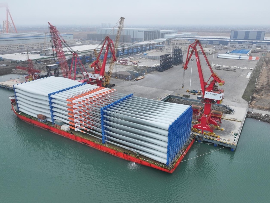近日,裝載153支風電葉片的“康琦富華”輪從招商局集團旗下中國外運呂四智能重裝碼頭順利啟航,創(chuàng)下全國風電葉片出口單船最大裝載量紀錄。