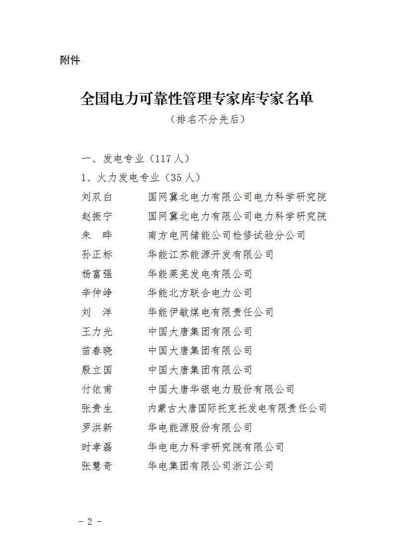 國家能源局綜合司關(guān)于公布全國電力可靠性管理專家?guī)鞂<颐麊蔚耐ㄖ?/span>