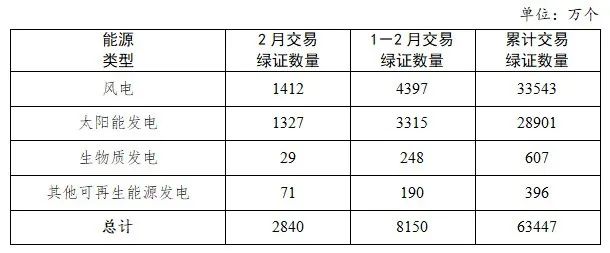 全國綠證核發(fā)情況一覽表(2025年2月)