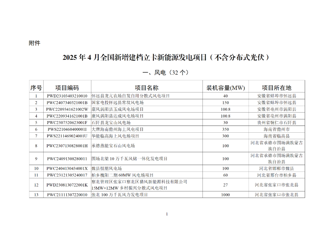 附件:2025年4月全國新增建檔立卡新能源發(fā)電項(xiàng)目(不含分布式光伏)