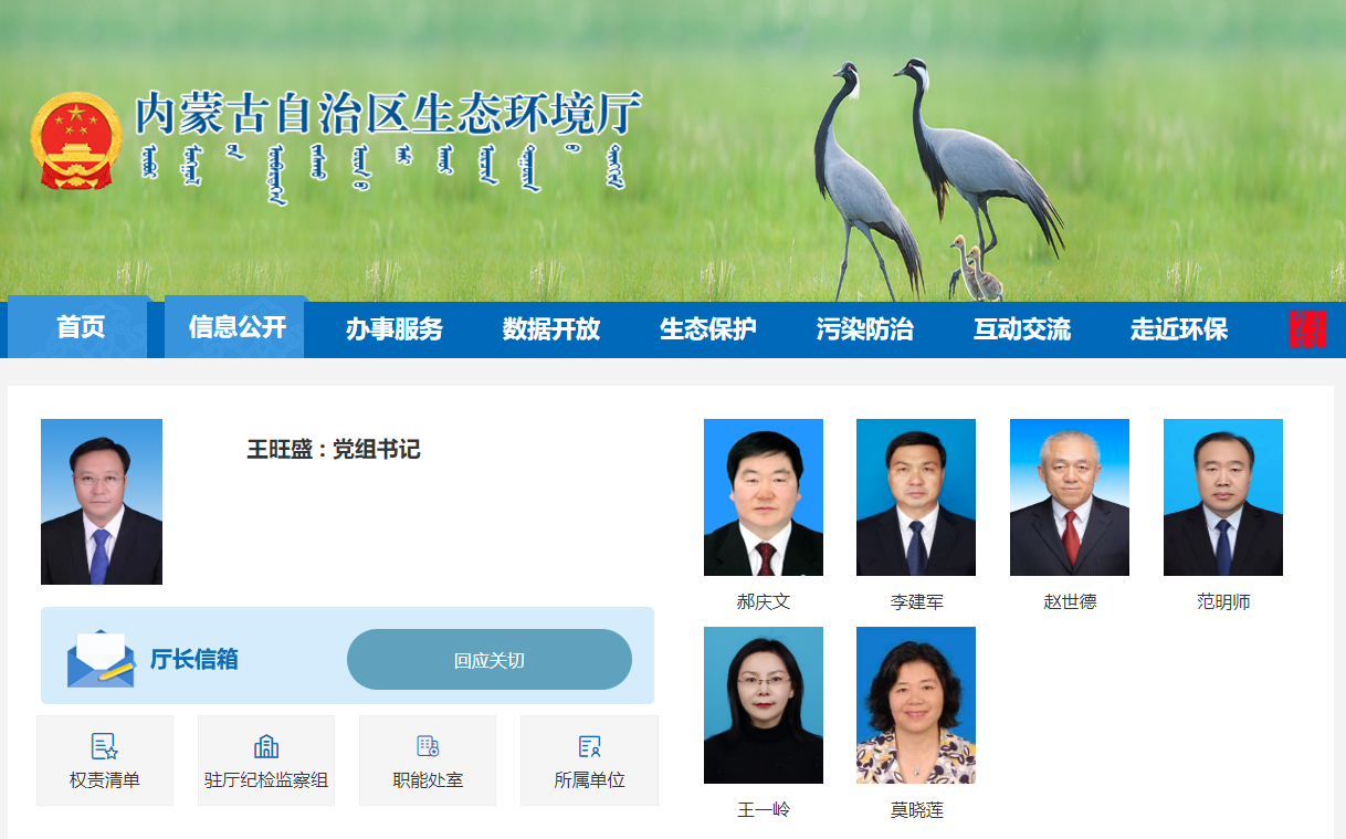 內(nèi)蒙古自治區(qū)生態(tài)環(huán)境廳官方網(wǎng)站“廳領(lǐng)導(dǎo)”欄目近日進(jìn)行更新,據(jù)最新名單顯示,王旺盛已任內(nèi)蒙古自治區(qū)生態(tài)環(huán)境廳黨組書記。