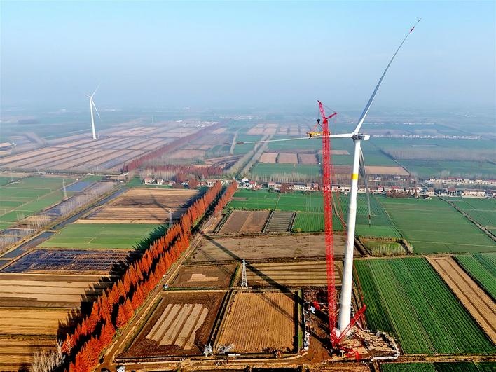 近日,在湖北省潛江市高石碑鎮(zhèn),華潤電力潛江高石碑100兆瓦風(fēng)電項(xiàng)目現(xiàn)場(chǎng),一臺(tái)1200噸的履帶吊將最后一片葉片,緩緩提升至160米高空與風(fēng)機(jī)輪轂精準(zhǔn)對(duì)接成功。該項(xiàng)目風(fēng)機(jī)塔筒整體結(jié)構(gòu)高度為160米,風(fēng)輪直徑為200米,是湖北省內(nèi)吊裝高度最高、風(fēng)輪直徑最大的風(fēng)電項(xiàng)目。(黎先才 李海波 肖平)