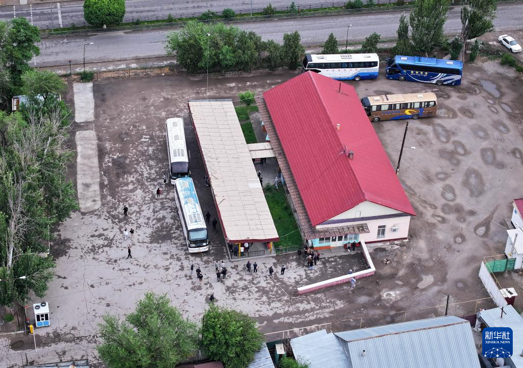 5月24日清晨,“擺渡人”在哈薩克斯坦扎爾肯特鎮(zhèn)汽車站準(zhǔn)備登上返回霍爾果斯的大巴。新華社記者李任滋攝