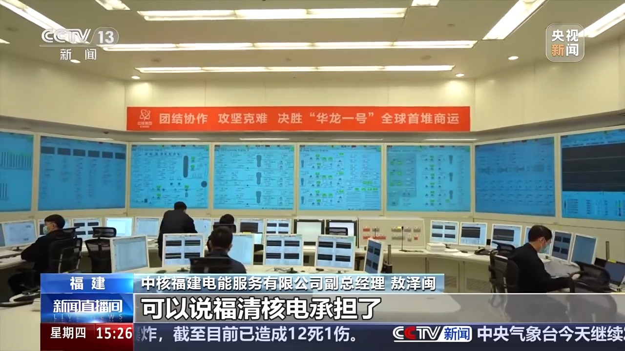 中核集團(tuán)福清核電生產(chǎn)計(jì)劃處副處長(zhǎng) 付誠(chéng):“華龍一號(hào)”一天大概可以發(fā)出2700萬(wàn)到2800萬(wàn)度電,它的發(fā)電能力是非常優(yōu)秀的,當(dāng)前我們整個(gè)福清核電全年的發(fā)電能力大概是500億千瓦時(shí)。