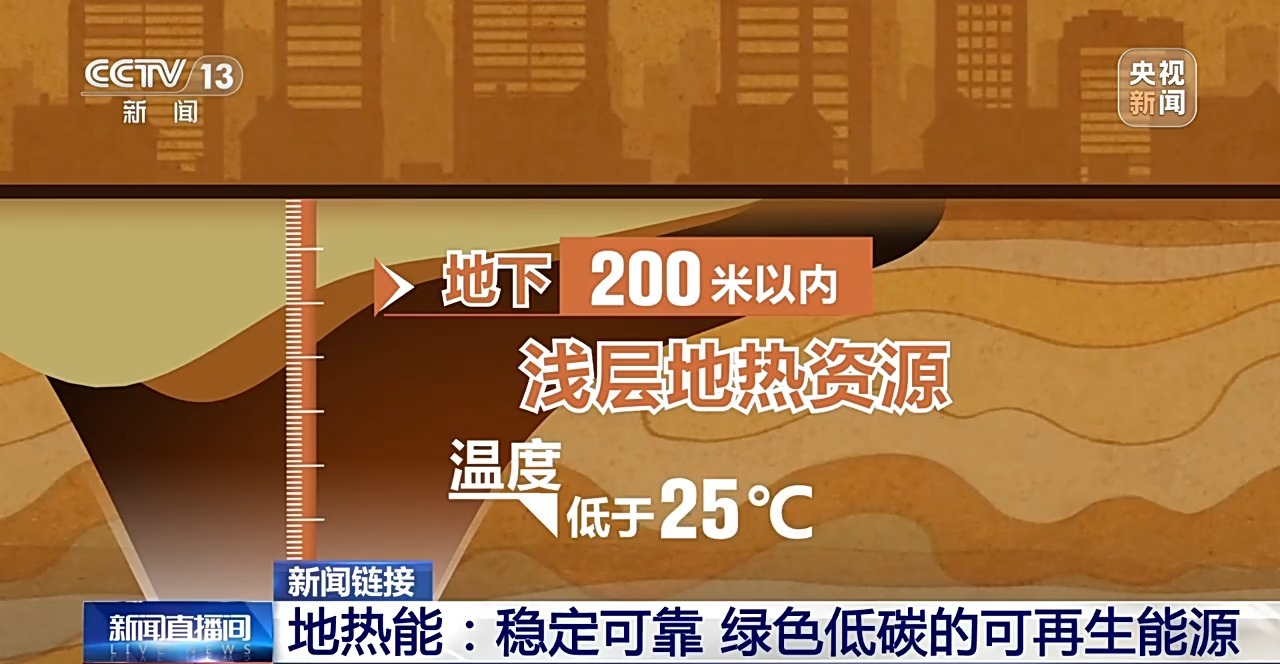 從地面鉆井,到地下200米以內(nèi),一般就是淺層地?zé)豳Y源,溫度低于25℃,特點(diǎn)是溫度全年保持穩(wěn)定,可以利用地表與室外空氣溫差,在冬季為室內(nèi)供暖、夏季供冷。