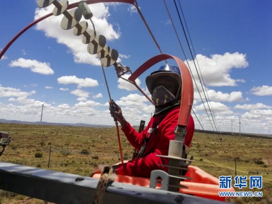 在南非北開普省德阿鎮(zhèn)附近的山地上,一座座白色風(fēng)機(jī)昂然佇立。勁風(fēng)吹過,風(fēng)機(jī)葉片徐徐轉(zhuǎn)動(dòng),這是中國(guó)國(guó)家能源集團(tuán)龍?jiān)措娏δ戏枪具\(yùn)營(yíng)的德阿風(fēng)電項(xiàng)目風(fēng)機(jī)。