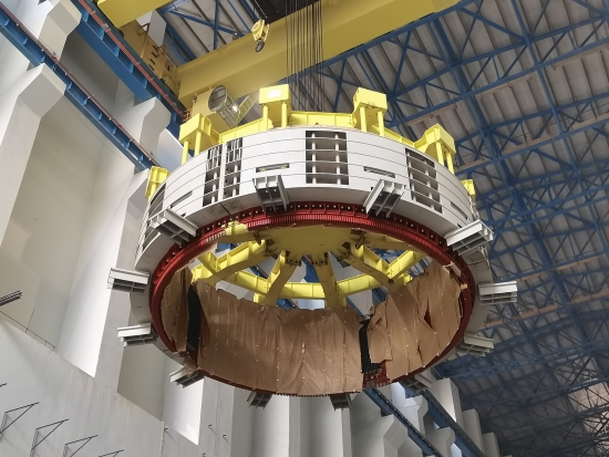 9月19日,坦桑尼亞朱利諾水電站7號(hào)機(jī)組定子完成吊裝。
