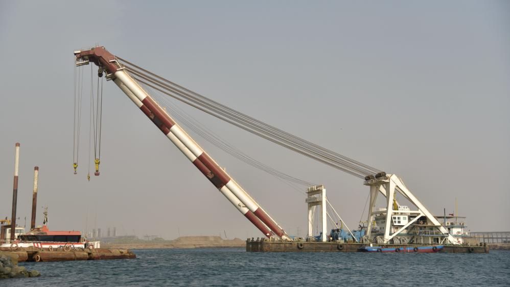 2017年8月18日,中國港灣公司第四航道局的起重船在沙特吉贊經(jīng)濟(jì)城項目上作業(yè)。