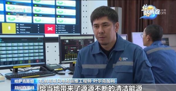 總臺記者 張譽耀:這里就是札納塔斯,哈薩克斯坦最大的風力發(fā)電場之一,像我身后這樣一座風力發(fā)電機能滿足當?shù)丶s4000戶家庭的用電需求,而我身后一共有40座這樣的風力發(fā)電機,也就是說能夠滿足當?shù)?/span>16萬戶家庭的用電需求。正是這一座座轉(zhuǎn)動的風能發(fā)電機,點亮了札納塔斯這座小城的日常生活。