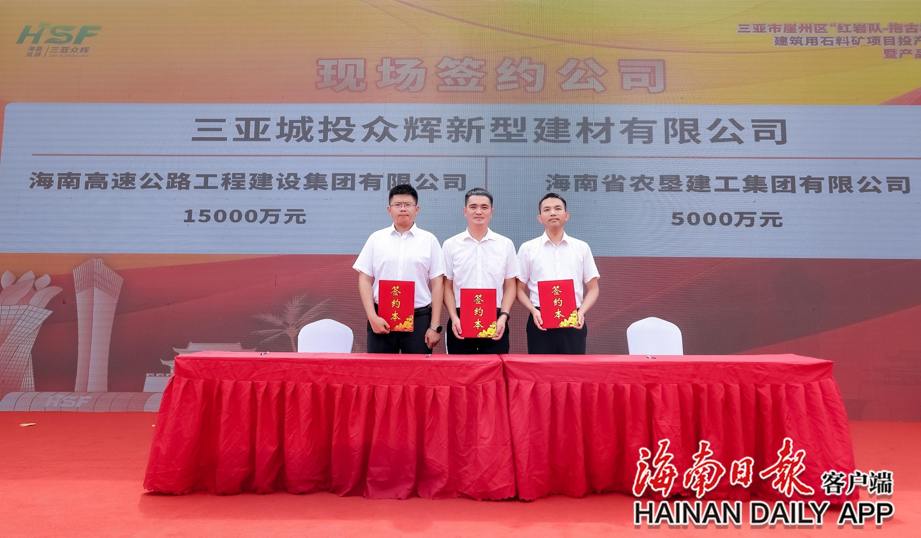 6月18日,海南農墾墾地融合示范項目——三亞崖州區(qū)“紅巖隊—抱古村”礦區(qū)建筑用石料礦項目正式投產運營,并舉辦產品發(fā)布會。在發(fā)布會期間,簽訂了2.5億元的砂石骨料銷售合約,累計簽約金額達2.9億元。