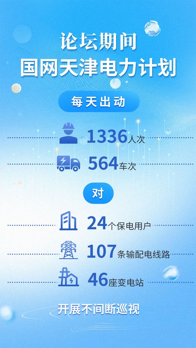 論壇期間,國網(wǎng)天津電力計劃每天出動1336人次、564車次對24個保電用戶、107條輸配電線路、46座變電站開展不間斷巡視。