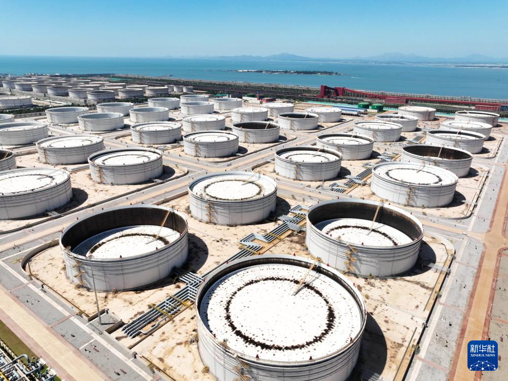 這是8月23日拍攝的山東港口青島港董家口原油商業(yè)儲(chǔ)備庫(kù)(無人機(jī)照片)。新華社發(fā)(王培珂攝)