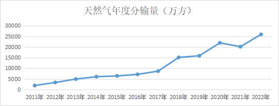 酒泉輸油氣分公司天然氣年度分輸量變化趨勢(酒泉輸油氣分公司供圖)