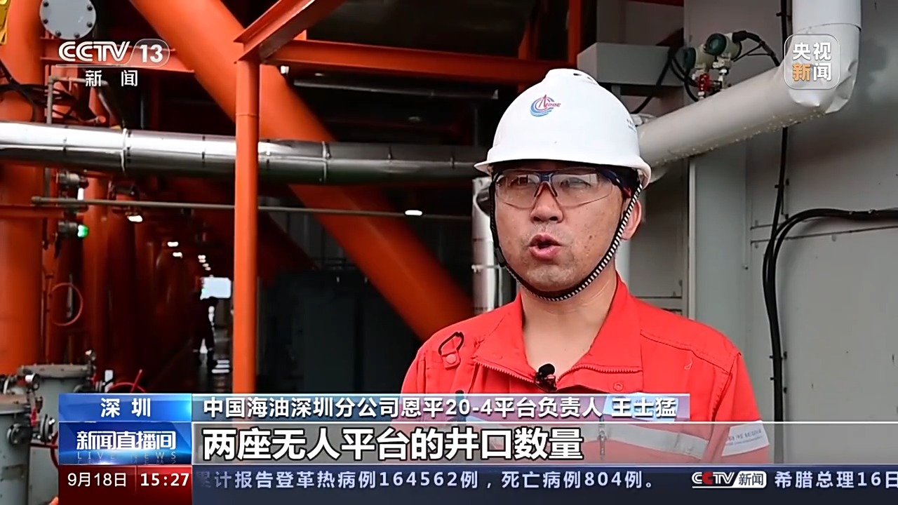 中國(guó)海油深圳分公司恩平20-4平臺(tái)負(fù)責(zé)人 王士猛:兩座無(wú)人平臺(tái)的井口數(shù)量、原油生產(chǎn)能力相當(dāng)于一座萬(wàn)噸級(jí)的大型傳統(tǒng)平臺(tái),而重量、面積僅為傳統(tǒng)平臺(tái)的三分之一,降低工程投資約2.8億元,減少日常維保工作量近三成,每年可節(jié)省運(yùn)維成本超千萬(wàn)元。