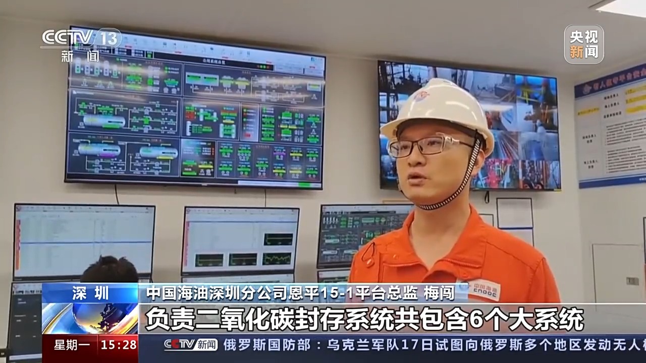 中國(guó)海油深圳分公司恩平15-1平臺(tái)總監(jiān) 梅闖:負(fù)責(zé)二氧化碳封存系統(tǒng)共包含6個(gè)大系統(tǒng),28個(gè)單機(jī)設(shè)備,我們按照“劃專業(yè)、劃系統(tǒng)、劃設(shè)備”的原則,精心管理每一臺(tái)設(shè)備,確保二氧化碳封存設(shè)備無(wú)故障運(yùn)行。