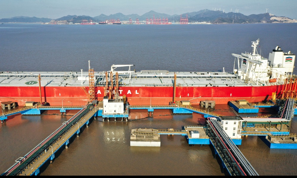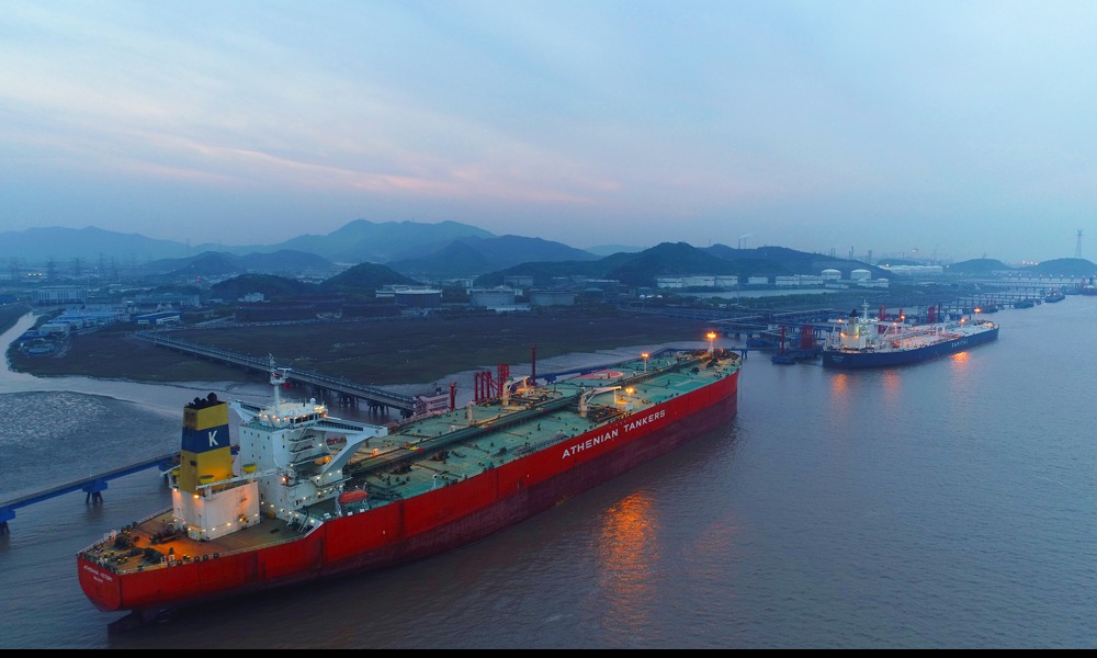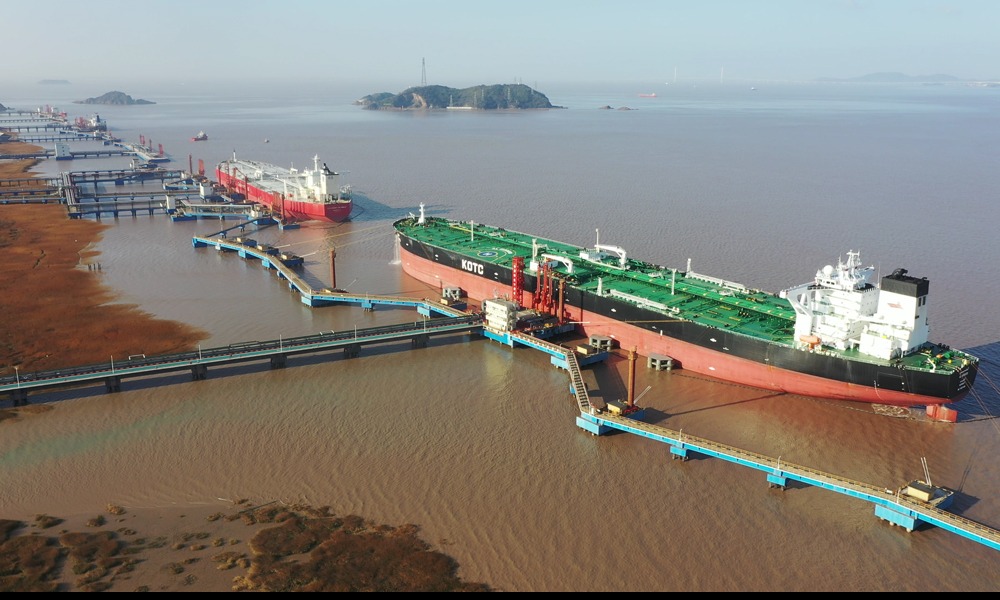 算山碼頭是中國石化旗下鎮(zhèn)海煉化自備原油碼頭,主要接卸來自“一帶一路”共建國家的原油,十年來,該碼頭累計接卸原油超過兩億噸。黃海鷹攝