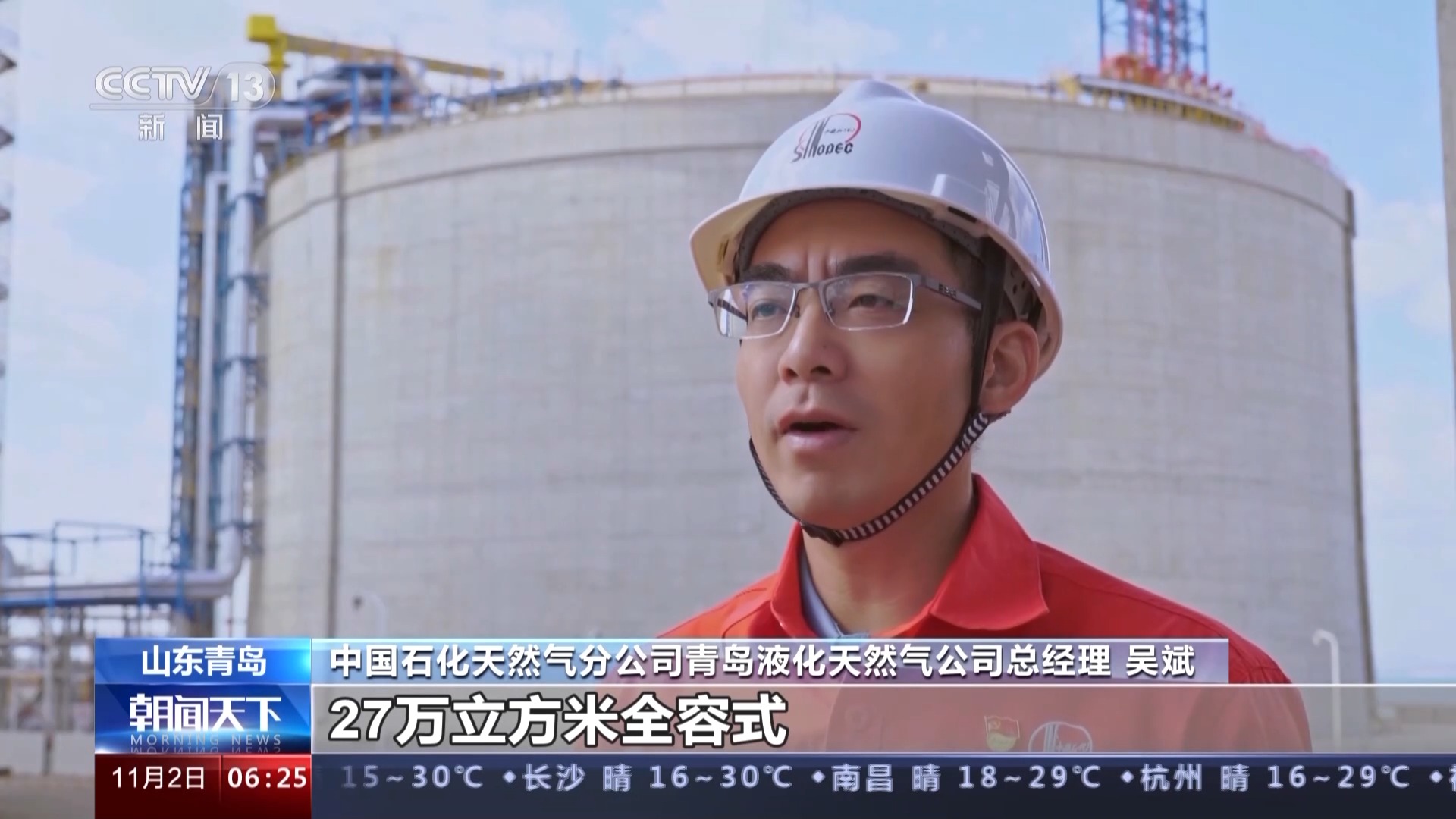 中國石化天然氣分公司青島液化天然氣公司總經(jīng)理 吳斌:這座儲(chǔ)罐的順利投用,也使青島LNG(液化天然氣)接收站年接轉(zhuǎn)能力提升至1100萬噸、年供氣能力突破至165億立方米,正式邁入千萬噸級(jí)LNG(液化天然氣)接收站行列。