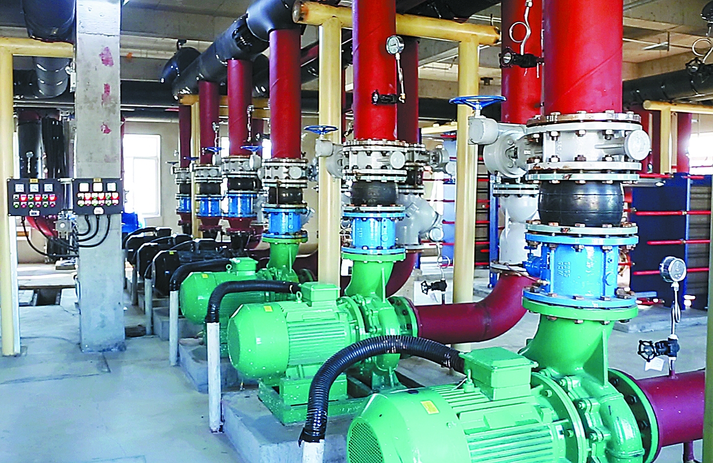 東營(yíng)職業(yè)學(xué)院深層地?zé)峁┡?xiàng)目設(shè)備一角。