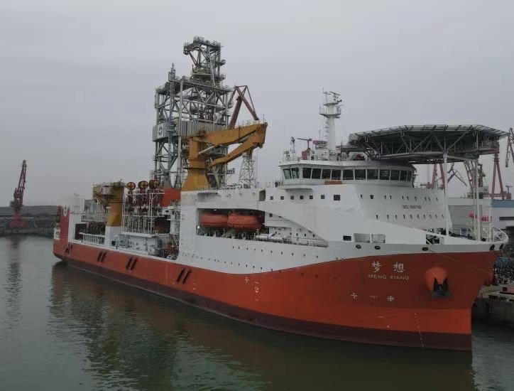 “夢想”號由中國船舶集團(tuán)承擔(dān)設(shè)計建造任務(wù),總噸約33000,總長179.8米、型寬32.8米,續(xù)航力15000海里,自持力120天,穩(wěn)性和結(jié)構(gòu)強(qiáng)度按16級臺風(fēng)海況安全要求設(shè)計,具備全球海域無限航區(qū)作業(yè)能力和海域11000米的鉆探能力。