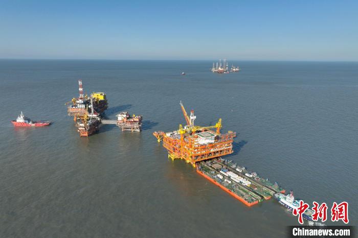 中國渤海有史以來最大海上油氣平臺——綏中36-1CEPQ(中心處理平臺)完成浮托安裝。(中國海油天津分公司供圖)