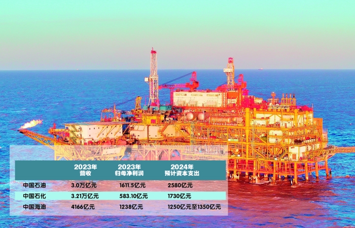 在資本性開(kāi)支方面,三家公司繼續(xù)保持強(qiáng)勁勢(shì)頭。中國(guó)石油預(yù)計(jì)2024年資本支出為2580億元。中國(guó)石化2024年計(jì)劃資本支出1730億元,主要用于濟(jì)陽(yáng)、塔河等原油產(chǎn)能建設(shè)、鎮(zhèn)海煉化擴(kuò)建、廣州石化技術(shù)改造、茂名技術(shù)改造等項(xiàng)目建設(shè)、綜合加能站網(wǎng)絡(luò)發(fā)展、現(xiàn)有終端銷售網(wǎng)絡(luò)改造等。中國(guó)海油預(yù)計(jì)今年資本支出為1250億元至1350億元,產(chǎn)量目標(biāo)為700百萬(wàn)桶油當(dāng)量至720百萬(wàn)桶油當(dāng)量,儲(chǔ)量替代率目標(biāo)為不低于130%。