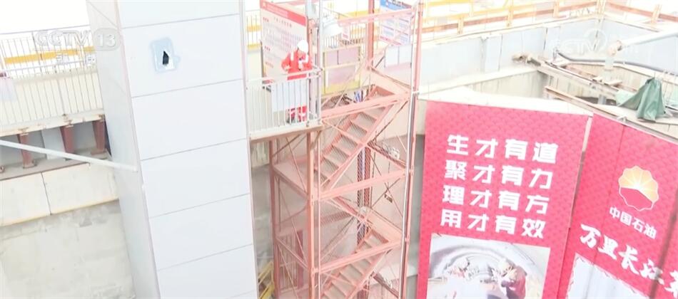 記者腳下這個巨大的深井就是中俄東線長江盾構(gòu)穿越工程的始發(fā)點,隧道的入口處就在這個豎井的底部。