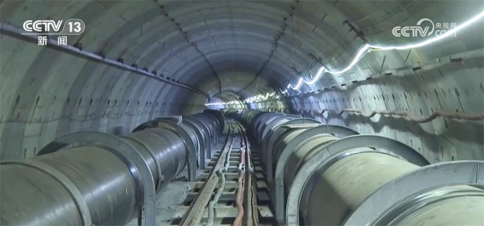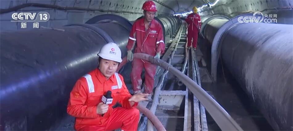 乘坐電梯,記者來到了地下28米深處的中俄東線的隧道的入口處,這里有3根直徑約1.5米的管子,呈倒“品”字排列。這個高度可以讓七八歲的小孩在里邊站著跑。這條隧道的最低點是位于長江江面以下60米的深處,在這樣一個環(huán)境里,施工人員又是如何作業(yè)的?我們一起跟隨記者到隧道里去看一看。