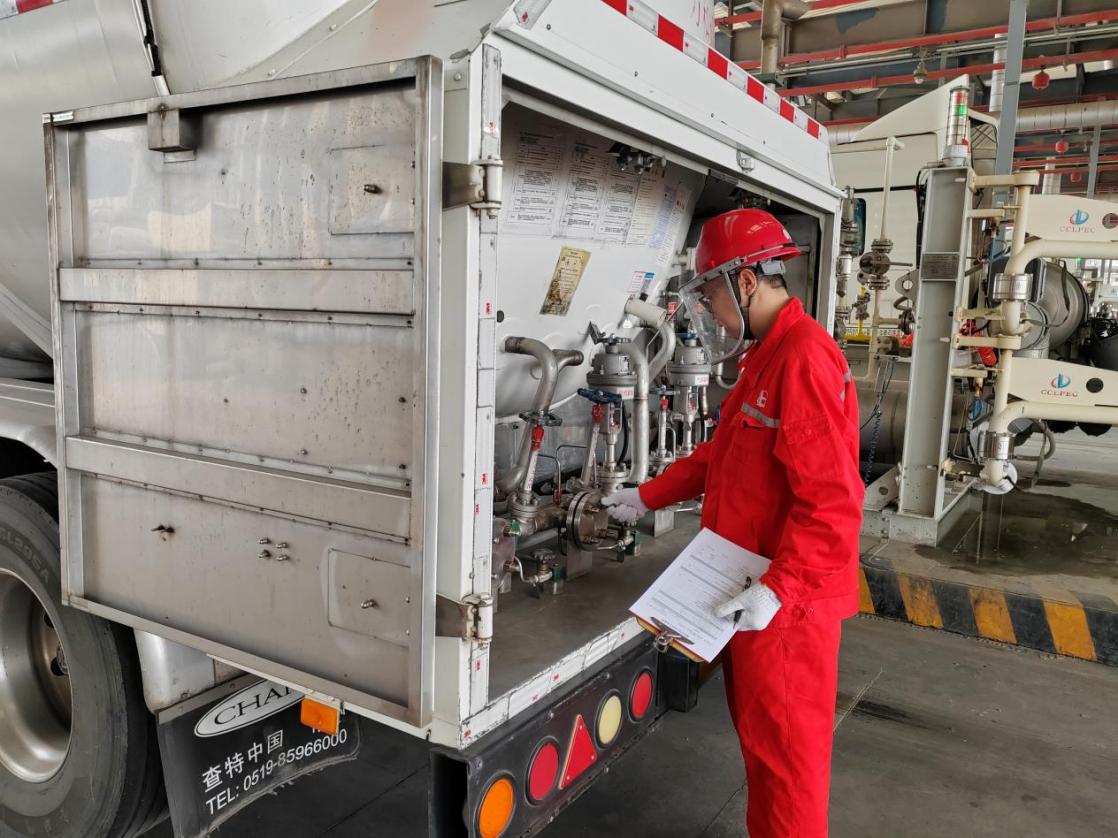 為了解決連續(xù)裝車難的問題,鹽城“綠能港”加強(qiáng)LNG槽車數(shù)字化管理,在槽車裝車過程中,有效增強(qiáng)調(diào)度、管控、統(tǒng)計等綜合控制能力,提升運(yùn)行效率,快速響應(yīng)并處理現(xiàn)場事宜,提高整體裝車能力和安全性,保障LNG槽車充裝的安全、平穩(wěn)、快捷、高效。