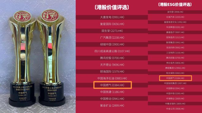 7月10日,由中國基金報主辦的2024中國資本市場發(fā)展論壇暨上市公司論壇在上海舉行,大會同步揭曉了2024中國上市公司“英華獎”評選結果,中國燃氣控股有限公司(下稱“中國燃氣”或“集團”,00384.HK)榮膺“港股價值獎”和“港股ESG價值獎”兩項大獎。