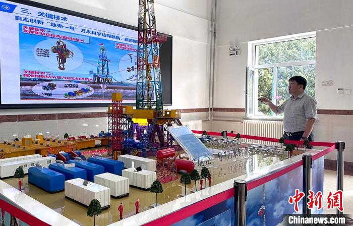 劉寶昌介紹“地殼一號(hào)”萬(wàn)米鉆機(jī)。郭佳攝