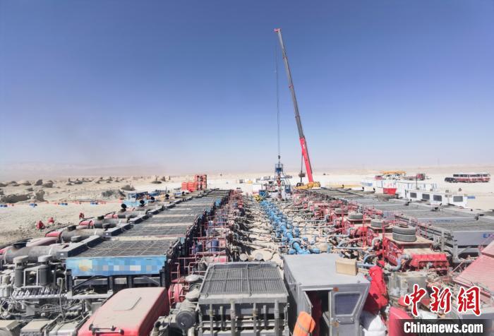 圖為溝探1井壓裂施工現(xiàn)場?;⒃?jǐn)z