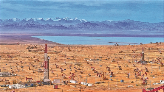 圖為在尕斯油區(qū),3500余口油水井高效運(yùn)行,搶抓生產(chǎn)黃金季。