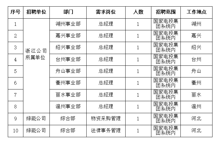 詳見《國家電投集團(tuán)浙江電力有限公司招聘崗位職責(zé)及任職條件》(附件1)。