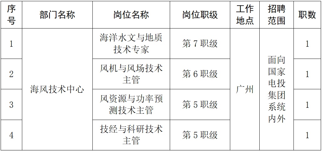 根據(jù)廣東公司工作需要和招聘管理相關(guān)規(guī)定,現(xiàn)就公司共計4個崗位進(jìn)行公開招聘。具體如下: