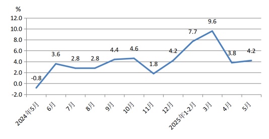 5月關(guān)稅沖擊顯現(xiàn),我國經(jīng)濟(jì)頂住壓力,多數(shù)指標(biāo)實(shí)現(xiàn)超預(yù)期增長。5月“兩重”“兩新”政策效能持續(xù)釋放,產(chǎn)業(yè)轉(zhuǎn)型升級提速支撐工業(yè)生產(chǎn)平穩(wěn)增長。另一方面,中美關(guān)稅摩擦對部分中下游企業(yè)生產(chǎn)造成擾動(dòng),拖累工業(yè)生產(chǎn)增速放緩。5月規(guī)模以上工業(yè)增加值同比增長5.8%,增速較4月小幅放緩0.3個(gè)百分點(diǎn)。分行業(yè)看,高技術(shù)產(chǎn)業(yè)和裝備制造業(yè)生產(chǎn)保持較快增長,增速小幅放緩;但下游勞動(dòng)密集型產(chǎn)品制造業(yè)受關(guān)稅沖擊影響較大,相關(guān)行業(yè)如紡織服裝生產(chǎn)由增轉(zhuǎn)降,家具制造降幅走闊。未來,中美貿(mào)易摩擦不確定性仍較大,且美國對華商品加征關(guān)稅稅率仍處高位,后續(xù)“搶出口”效應(yīng)衰減,部分中下游行業(yè)生產(chǎn)增長壓力或加劇。國內(nèi)穩(wěn)生產(chǎn)、擴(kuò)內(nèi)需政策或加碼擴(kuò)圍,在政策托舉以及高端智能產(chǎn)業(yè)帶動(dòng)下,工業(yè)和服務(wù)業(yè)生產(chǎn)有望保持平穩(wěn)較快增長,增速或邊際放緩。