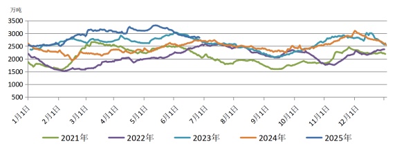 圖8 2021—2025年北方九港合計(jì)庫存