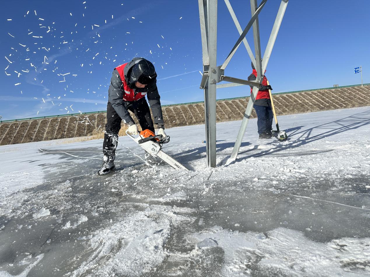近期,隨著寒潮持續(xù)來襲,塔基周邊冰層逐漸凝結(jié),對鐵塔結(jié)構(gòu)穩(wěn)定構(gòu)成新的威脅。輸電管理處迅速啟動“除冰護塔”專項行動。由黨員骨干組成的“先鋒突擊隊”聞令而動,頂著刺骨寒風、迎著撲面冰碴,攜帶發(fā)電機、電鎬、電鋸、破冰錘等專業(yè)除冰裝備奔赴現(xiàn)場。他們采取“機械破冰+人工清理”相結(jié)合的方式:先用電鎬精準鑿開冰層與塔腿之間的粘結(jié)面,再用電鋸切割大塊覆冰,最后用鐵鍬、撬棍徹底清除殘留冰體,確保塔材與冰層之間恢復安全距離。經(jīng)過數(shù)天連續(xù)奮戰(zhàn),所有鐵塔塔材與冰層間恢復安全距離,隱患得以排除。這場與冰雪的較量,不僅是應急搶險的成功實踐,更是烏蘭察布電力人“特別能吃苦、特別能戰(zhàn)斗、特別能奉獻”鐵軍精神的生動寫照。