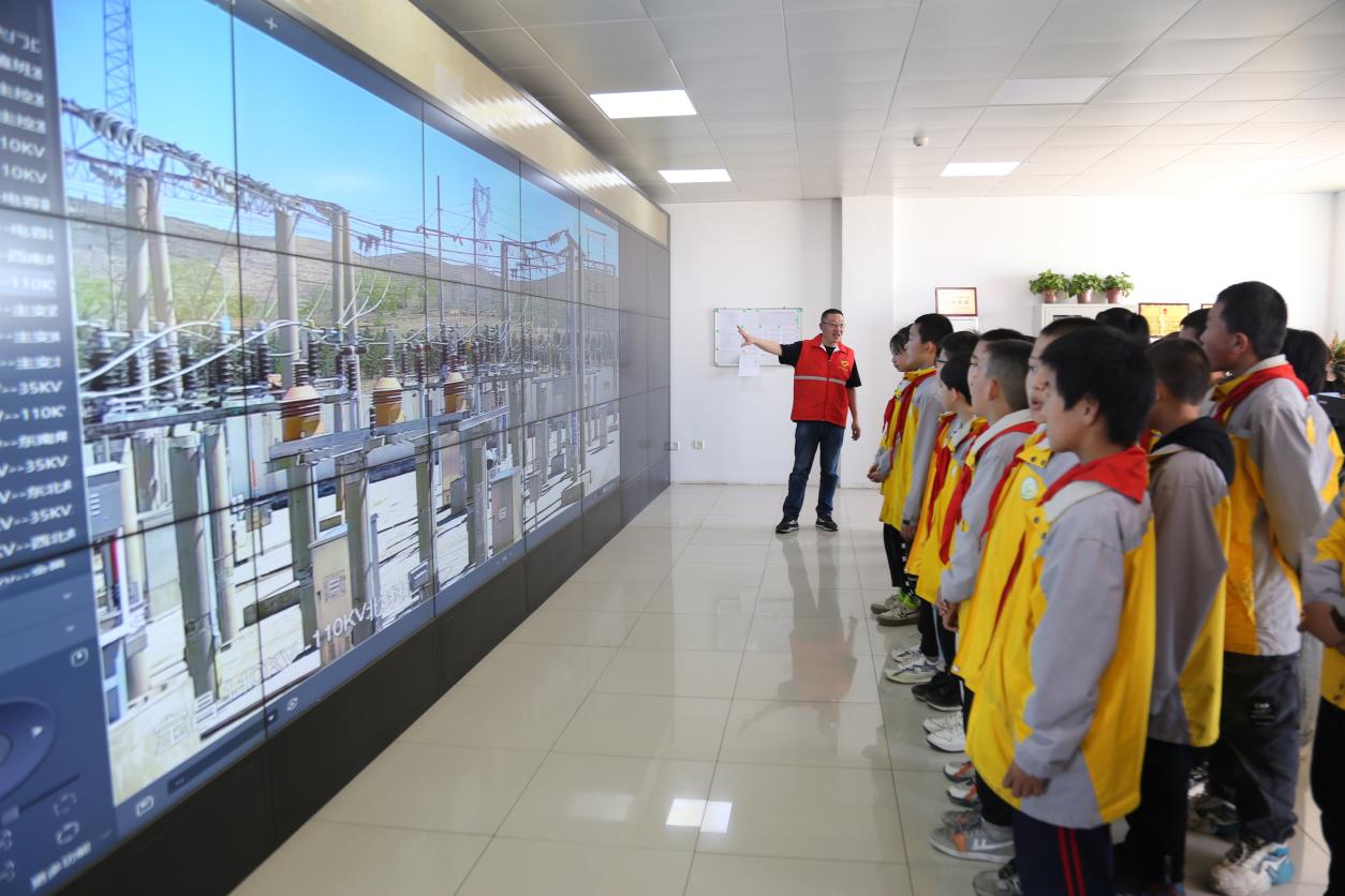 在調(diào)控班,同學們走進電力科普小課堂,志愿者通過調(diào)度監(jiān)控大屏向同學們講授電是如何產(chǎn)生、變電柜的作用、輸電到家的總體過程等。以現(xiàn)場采訪問答的方式,向?qū)W生們講解太仆寺旗電網(wǎng)分布情況。同時,向同學們講解生活中用電安全、電力設(shè)施保護、節(jié)約用電等相關(guān)知識,號召同學們從小養(yǎng)成節(jié)約用電的良好習慣。整個過程,同學們?nèi)褙炞⒌伛雎犞v解,時而側(cè)首思考、時而舉手提問,與志愿者積極互動。