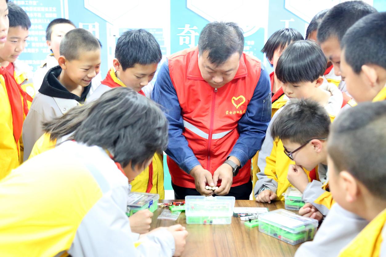 在創(chuàng)新工作室,學生們化身“電博士”,在志愿者的帶領(lǐng)下,體驗了“手搖發(fā)電”“串并聯(lián)電路連接”“電磁感應現(xiàn)象”等富有趣味性的電力科學小實驗,在歡聲笑語中學習電力知識。