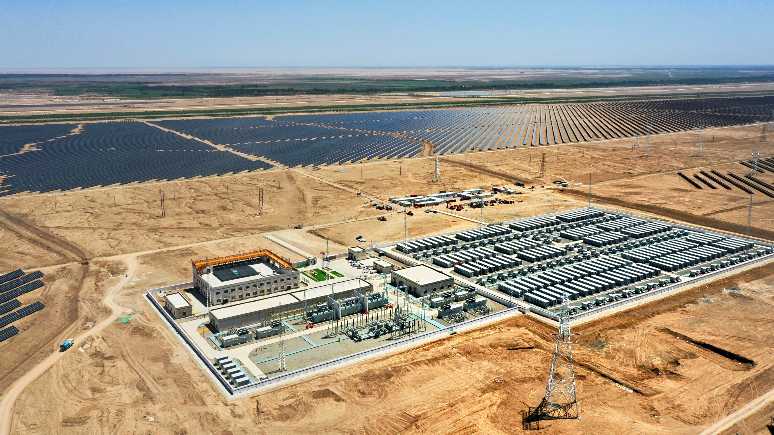 位于喀什地區(qū)莎車縣的全國最大電化學(xué)儲能電站。(王康 攝)