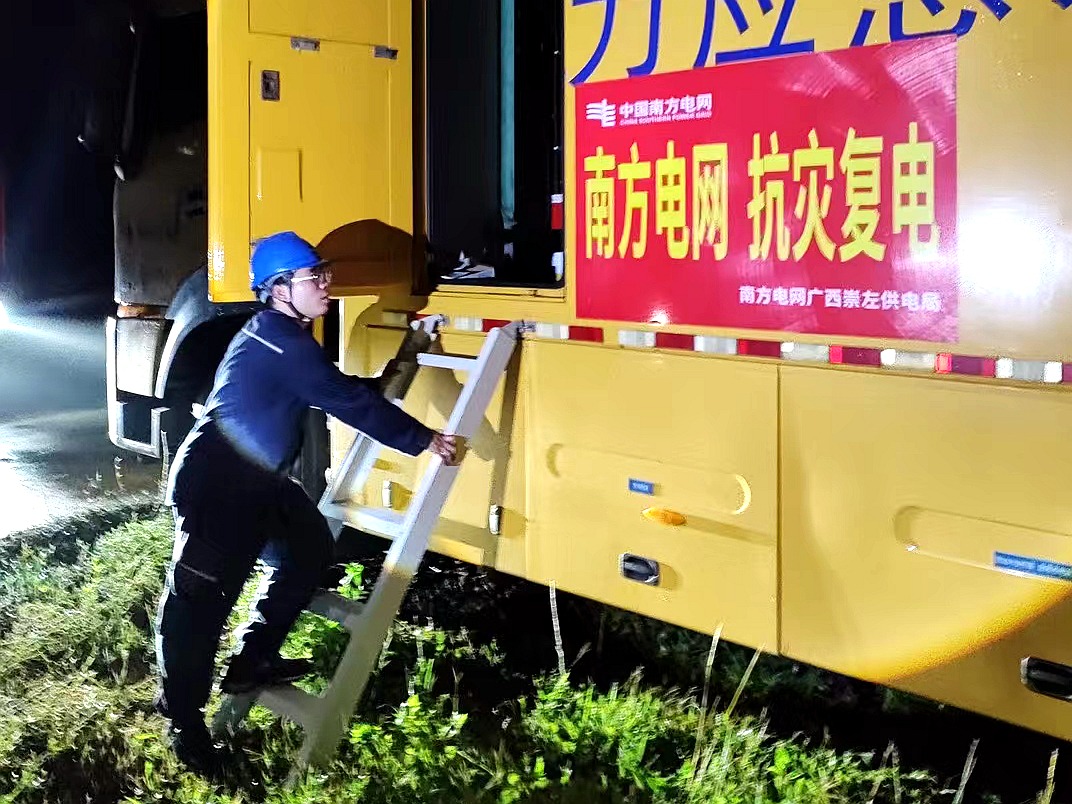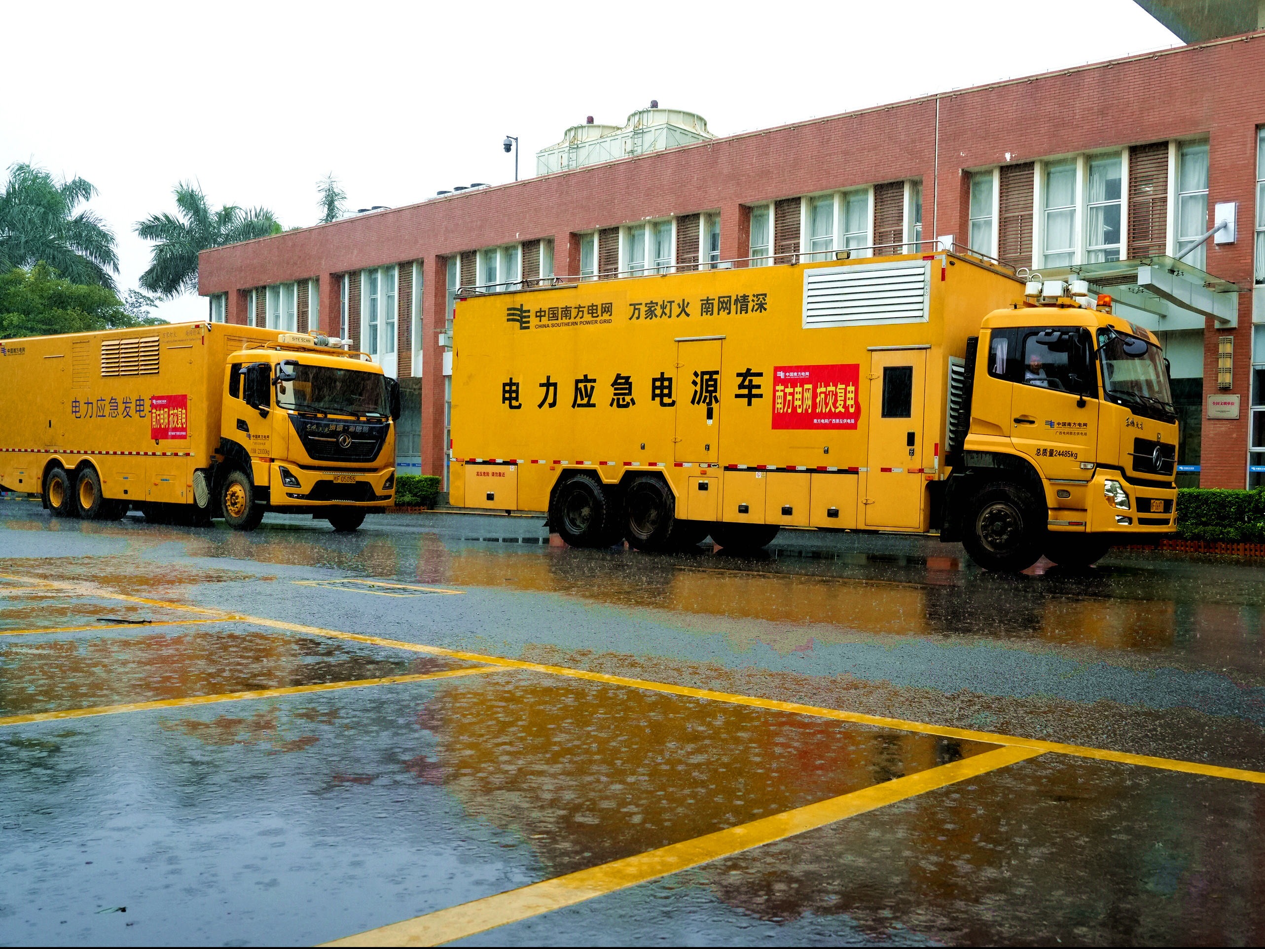 9月8日上午,南方電網(wǎng)廣西崇左供電局應(yīng)急發(fā)電車迎著暴雨出發(fā)。黃軍淋 攝