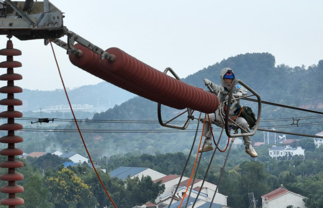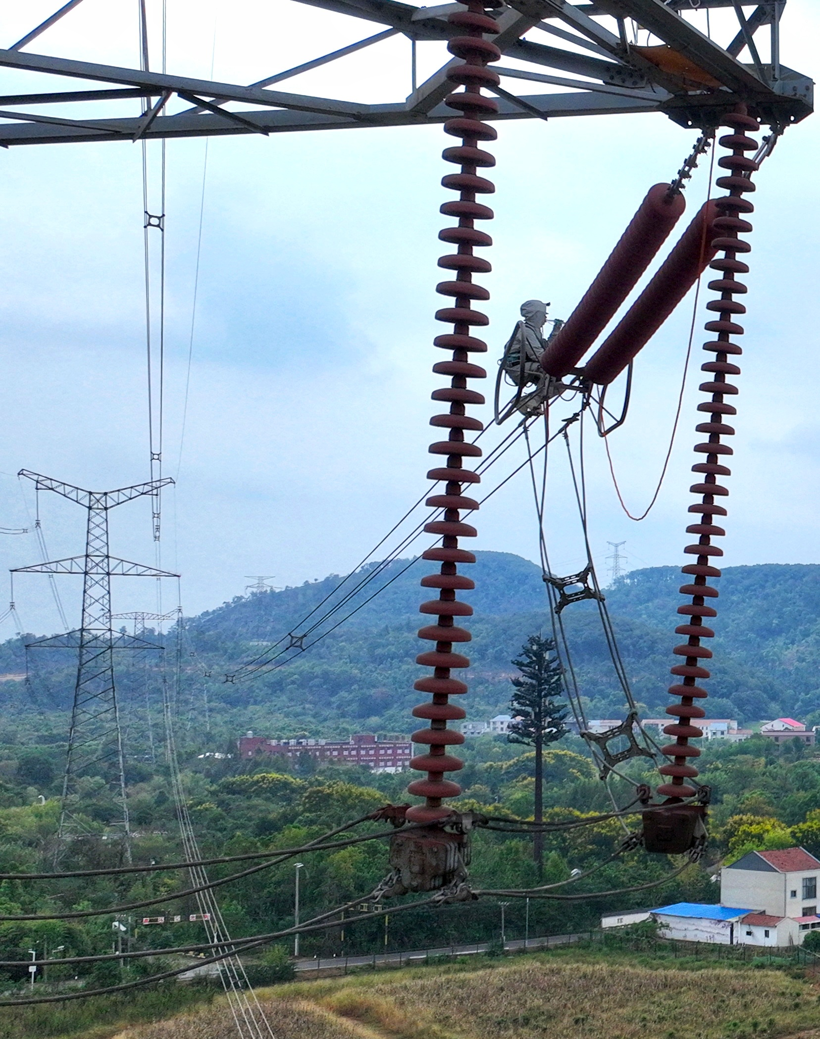 9月14日,國(guó)網(wǎng)湖北超高壓公司帶電作業(yè)人員,在耐張瓷瓶串等候下導(dǎo)線(xiàn)指令,處理500千伏漢軍線(xiàn)線(xiàn)夾發(fā)熱嚴(yán)重缺陷。黎金勇攝