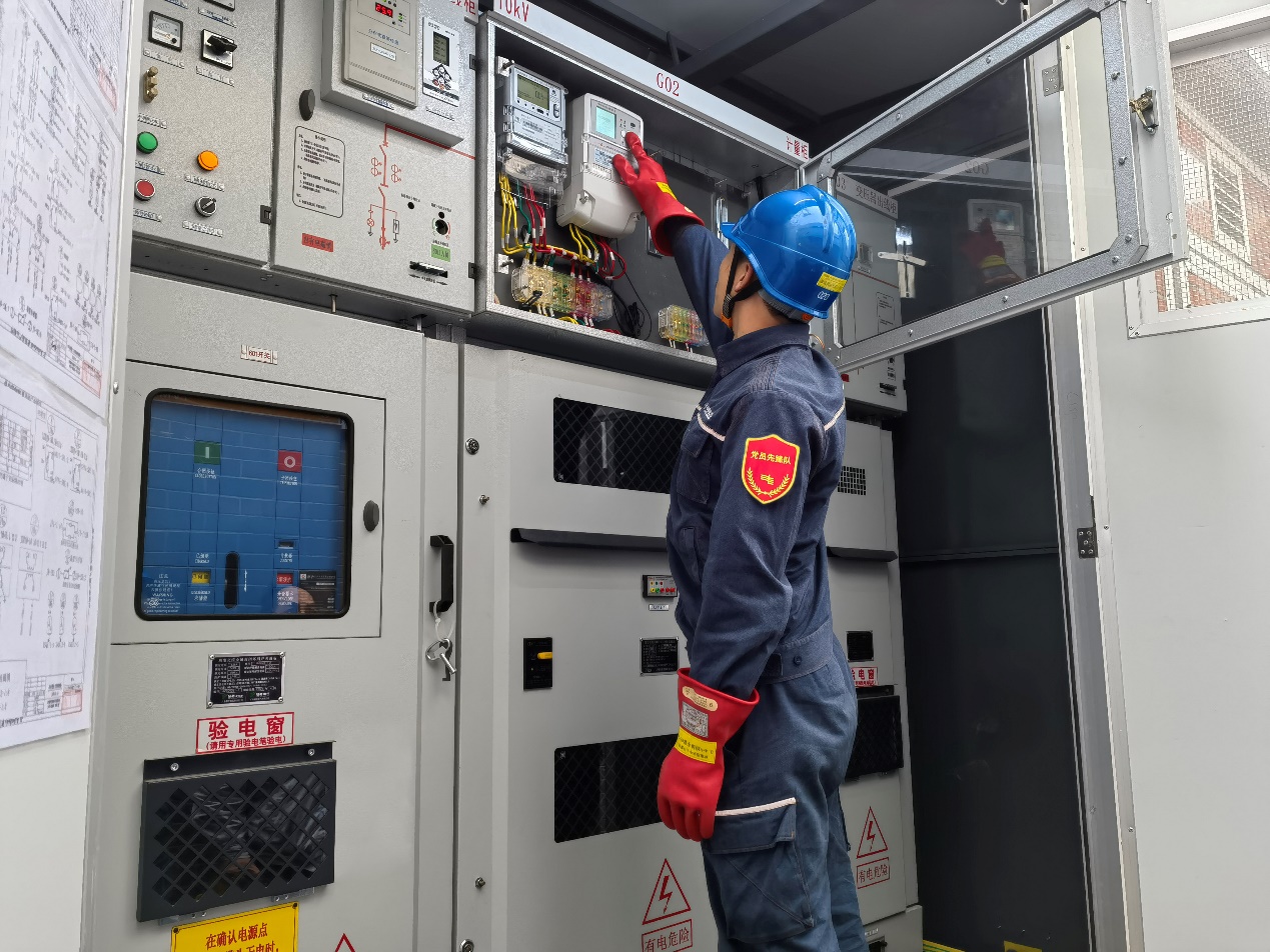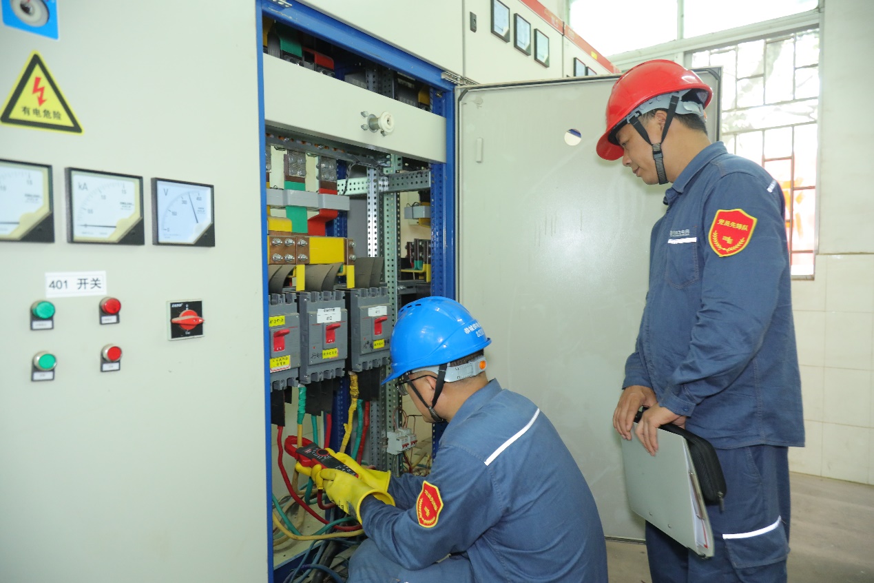恭城供電公司保供電工作人員正在對(duì)電力設(shè)備進(jìn)行安全檢查。