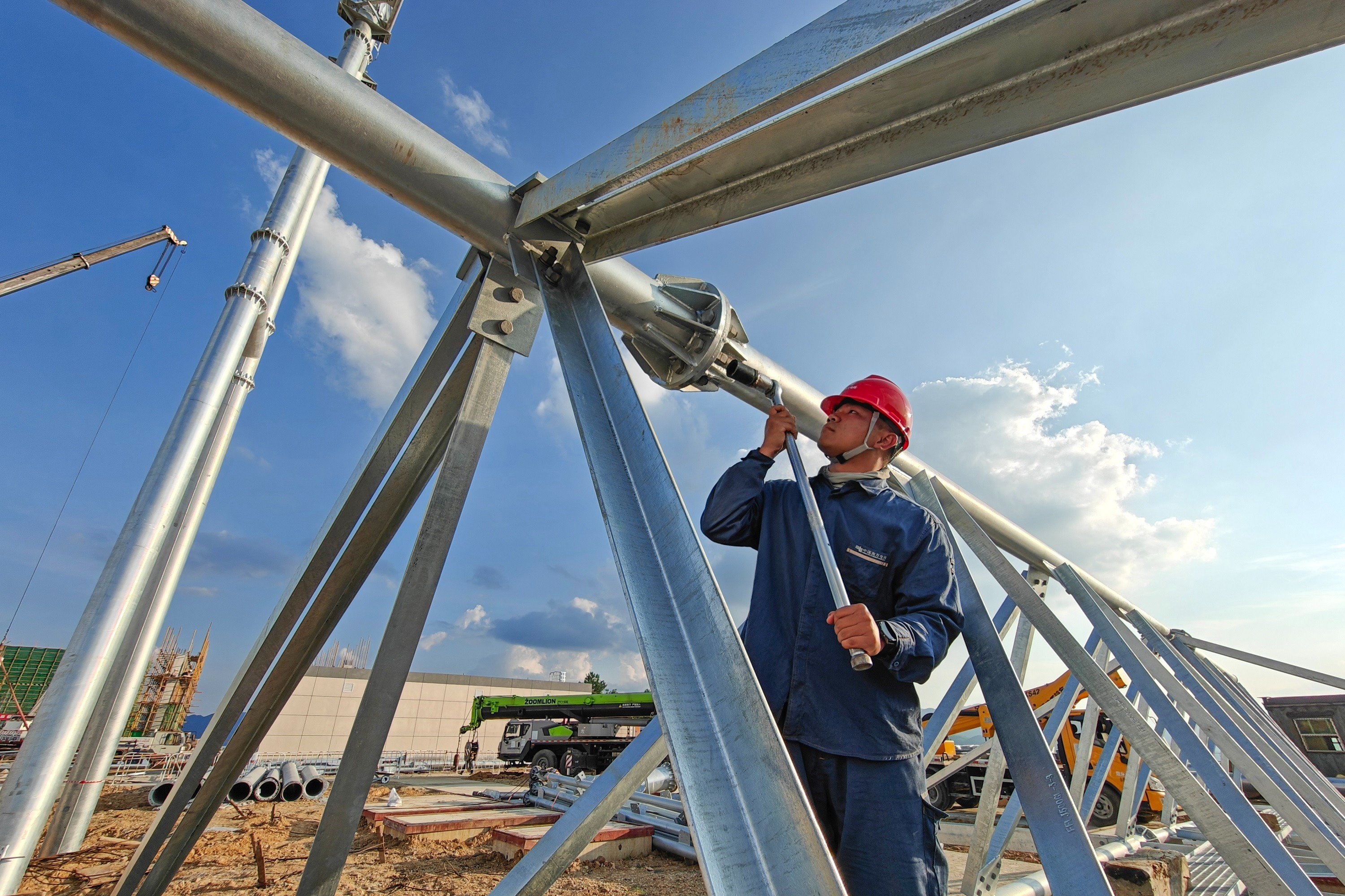在桂林,500千伏漓江變電站工程也在緊鑼密鼓推進中,起重機、高空車、運輸車往來穿梭,200余名施工人員揮汗如雨,正在推進500千伏架空線、母線安裝等工作。漓江變電站是廣西“十四五”重點項目,也是南方電網公司2024年防冰抗災重點工程,設計總容量300萬千伏安。該站采用新型節(jié)能導線應用技術等節(jié)能低碳技術,全力打造綠色電網工程。工程建成后將進一步優(yōu)化廣西北部電力主網架結構,提升防冰抗災和電力保供能力,同時也將為桂林世界級旅游城市建設提供電能支撐。
