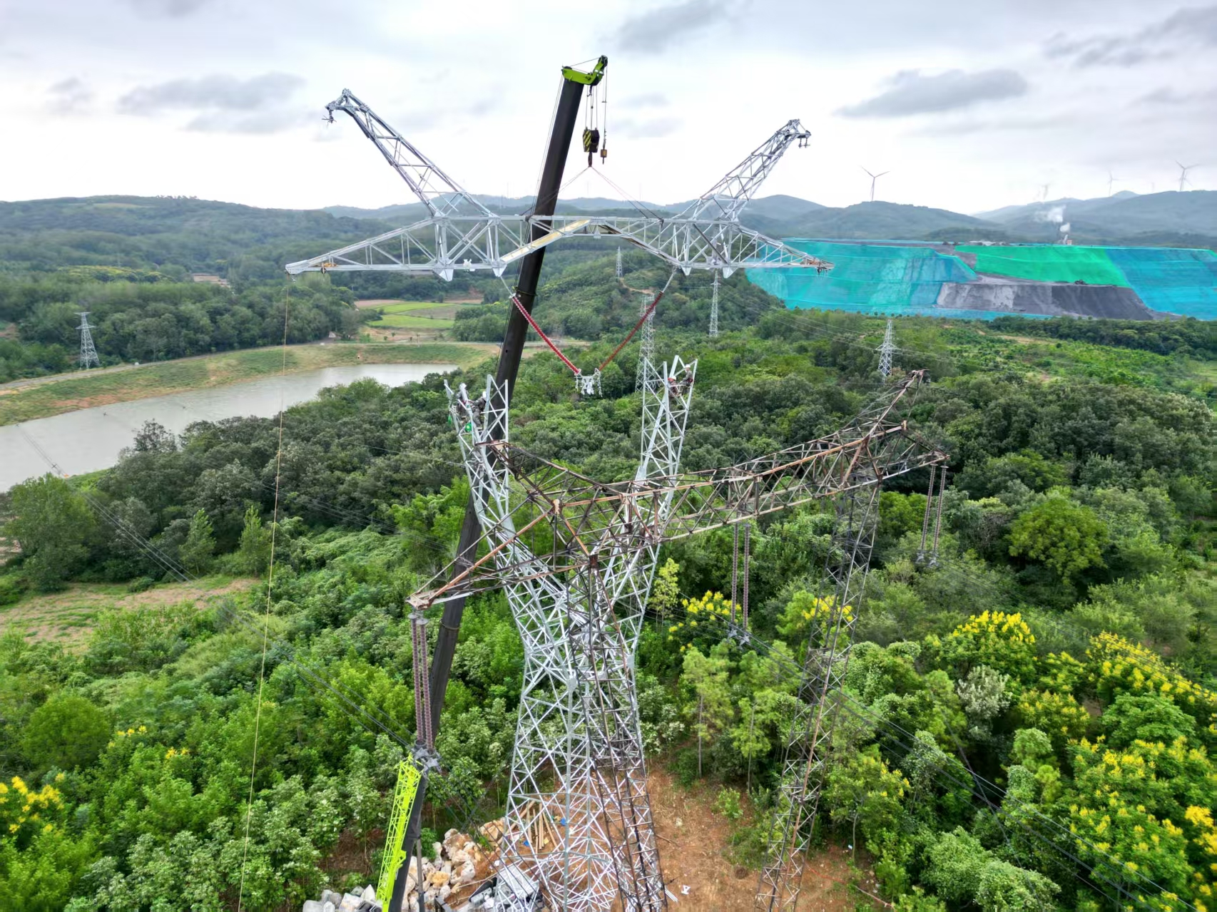 中國能源新聞網(wǎng)訊(汪明洋)9月9日,在位于湖北省鐘祥市磷礦鎮(zhèn)劉沖村的500千伏雙玉二回31號桿塔組立施工現(xiàn)場,吊車的轟鳴聲與現(xiàn)場指揮聲交織在一起,國網(wǎng)湖北超高壓公司鄂西北運(yùn)維分部的施工人員正開展最后一道橫擔(dān)吊裝工序。隨著這段長23.1米、重約4.5噸的橫擔(dān)穩(wěn)穩(wěn)落位,標(biāo)志著雙玉二回第二階段抗冰改造已進(jìn)入收尾階段,這場耗時近一年的湖北主網(wǎng)近10年最大抗冰改造工程穩(wěn)步實施。