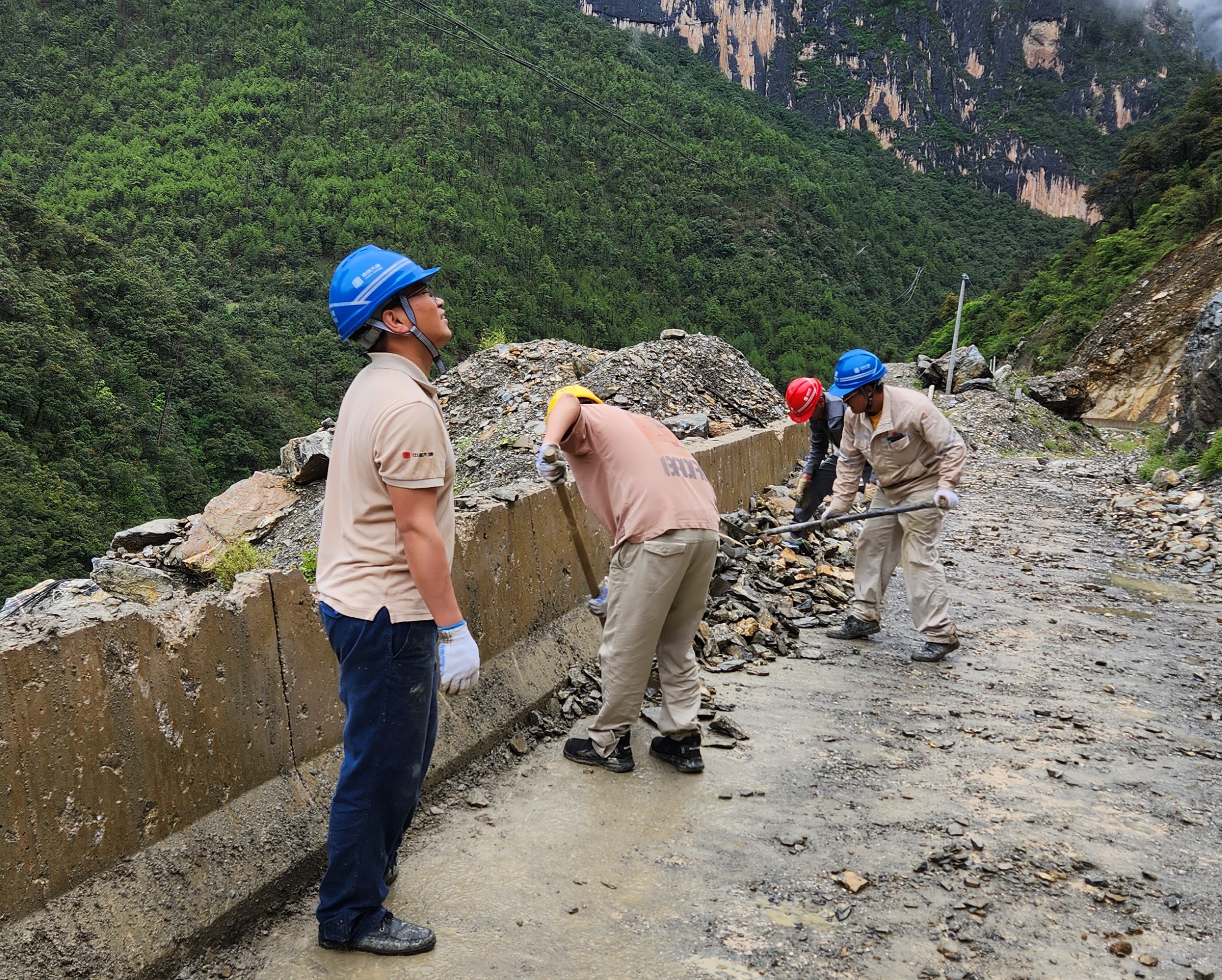 由于定曲河行洪水位上漲,該公司去學(xué)水電站至瓦卡鎮(zhèn)間的路段也遭受急流沖刷,路面斷裂喪失通行能力,短期無法恢復(fù)。為保障電力供應(yīng)不受影響,該電站果斷選擇替代路線運(yùn)送后勤物資。