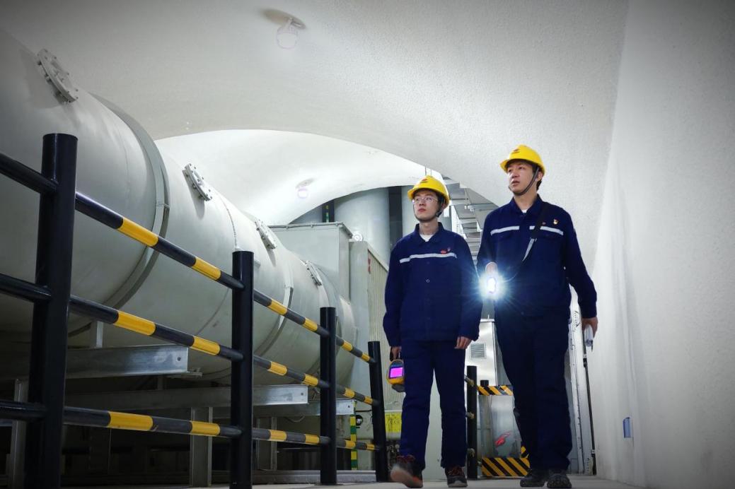 瑪爾擋水電站運(yùn)維人員正在地下廠(chǎng)房巡回檢查離相封閉母線(xiàn)。