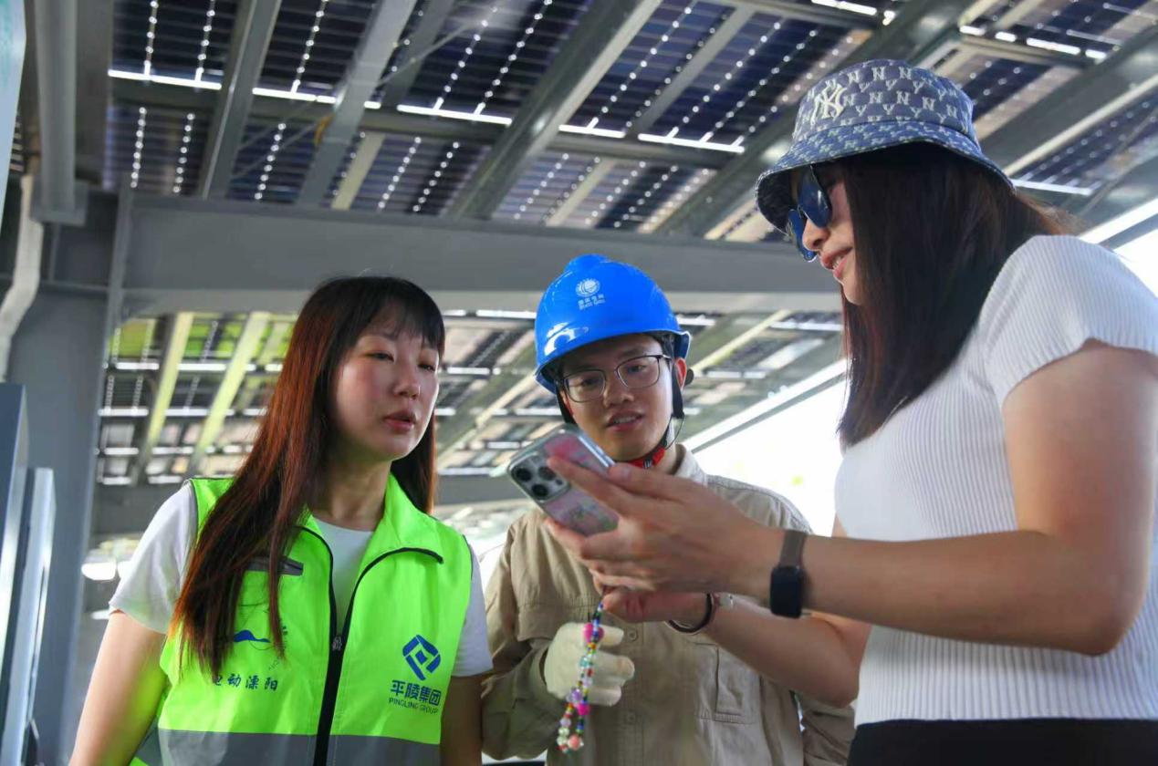 工作人員在微電網(wǎng)為游客提供服務(wù)。