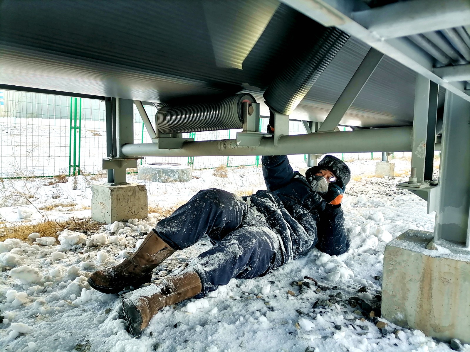檢修人員在寒風(fēng)中排查皮帶故障。